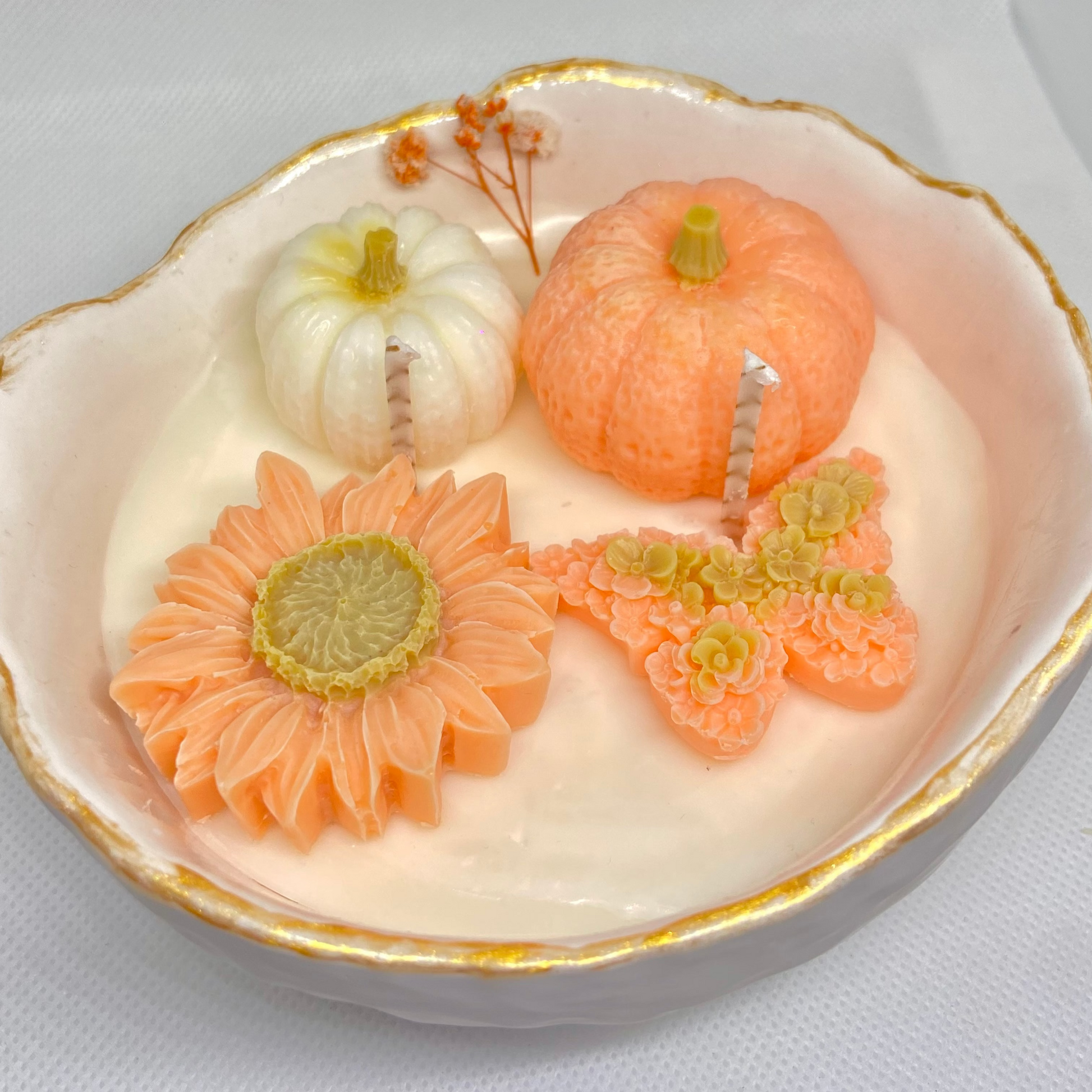 La vela de soja Esencia de Otoño, elaborada en un recipiente de yeso hecho a mano, aporta un toque minimalista y elegante a cualquier espacio.