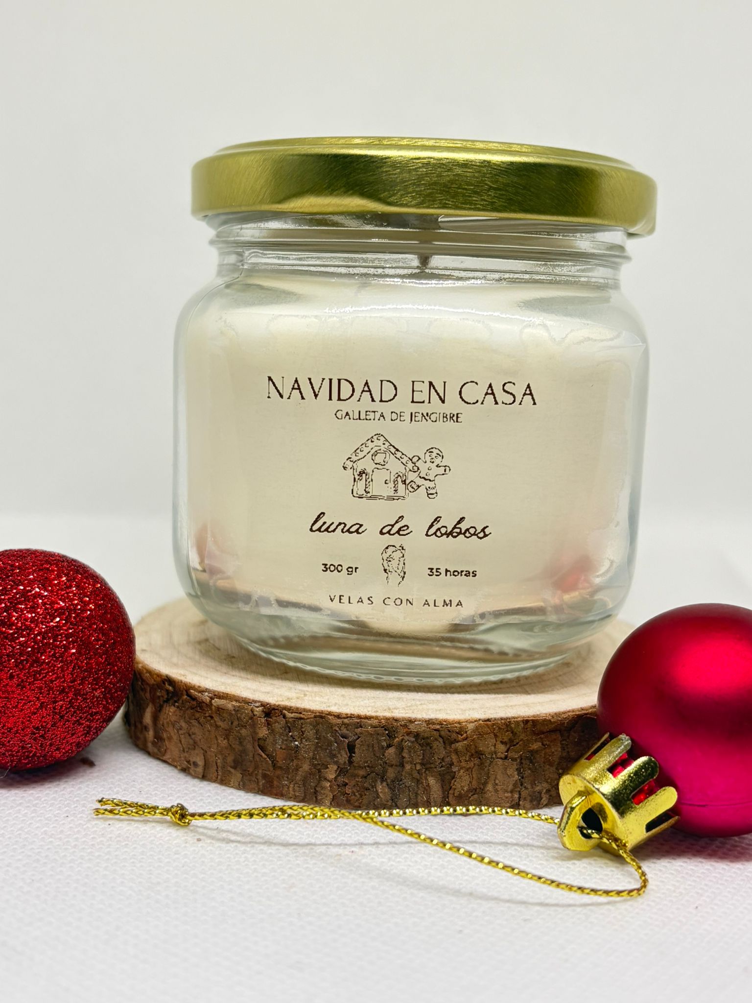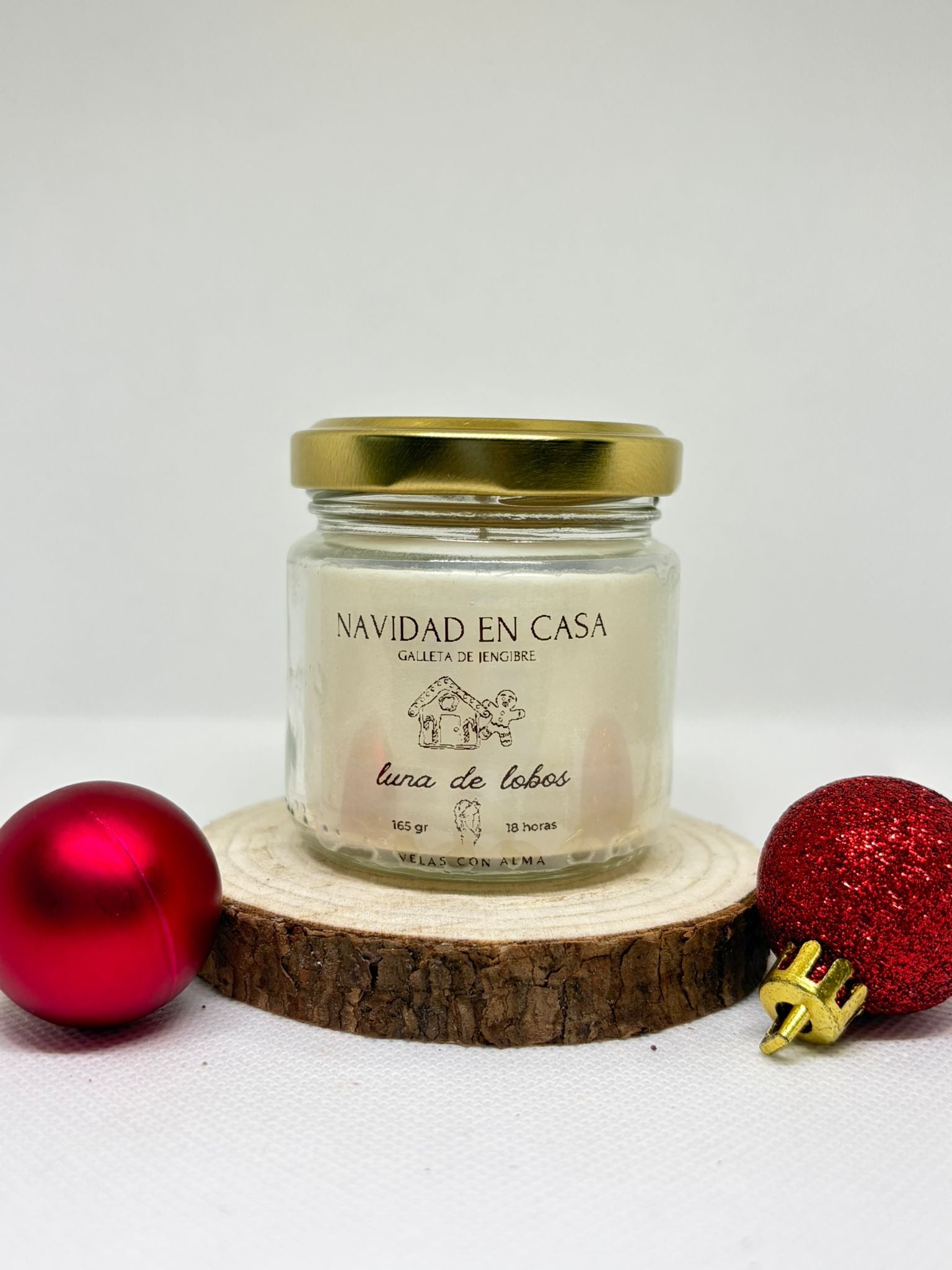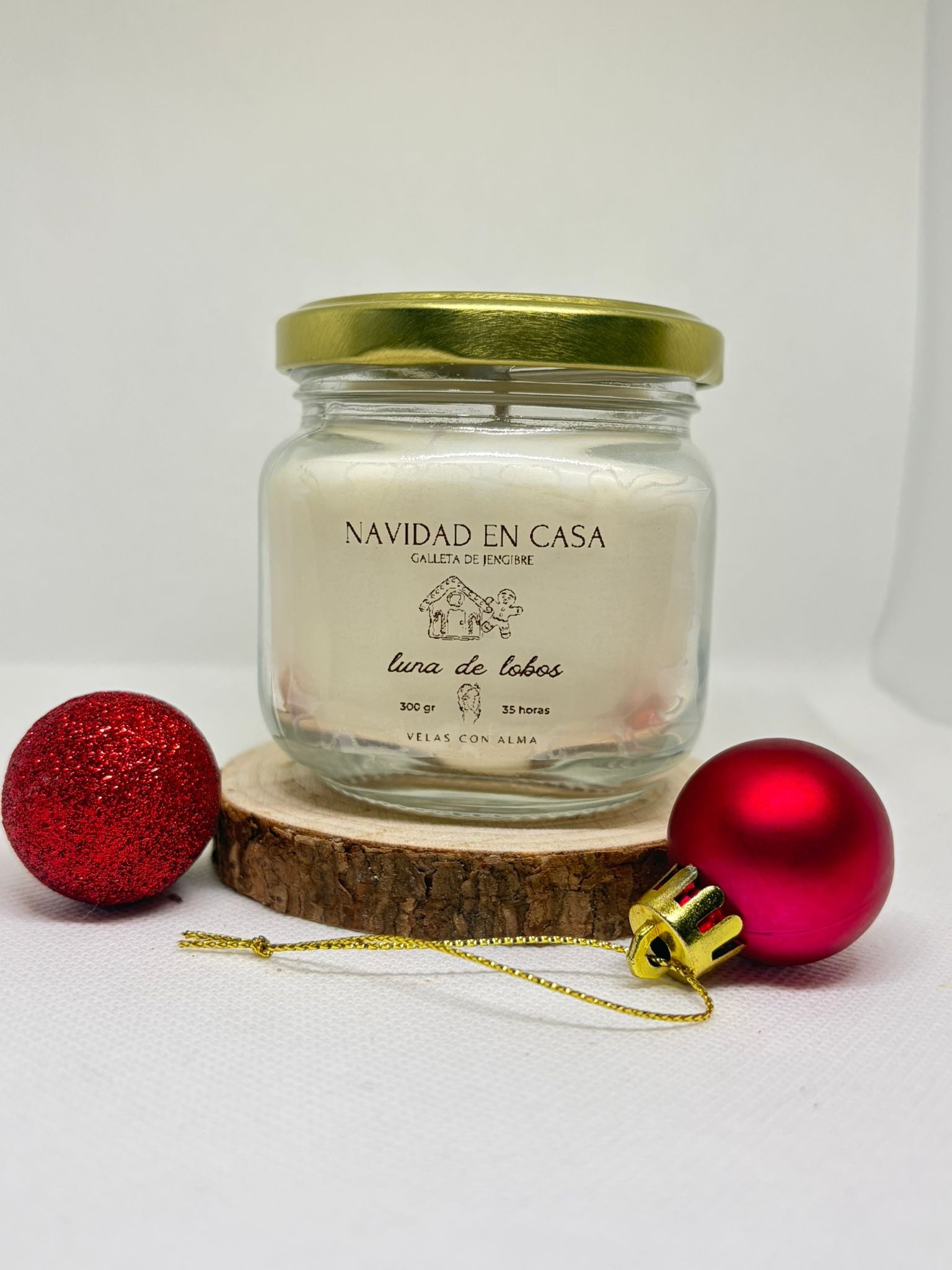Hecha a mano con cera de soja 100% vegetal, esta vela ofrece una combustión limpia y una luz suave que invita a la calma. Su diseño sencillo y elegante mantiene la estética minimalista de Luna de Lobos, convirtiéndola en el detalle perfecto para regalar o para disfrutar en tus momentos de magia navideña.