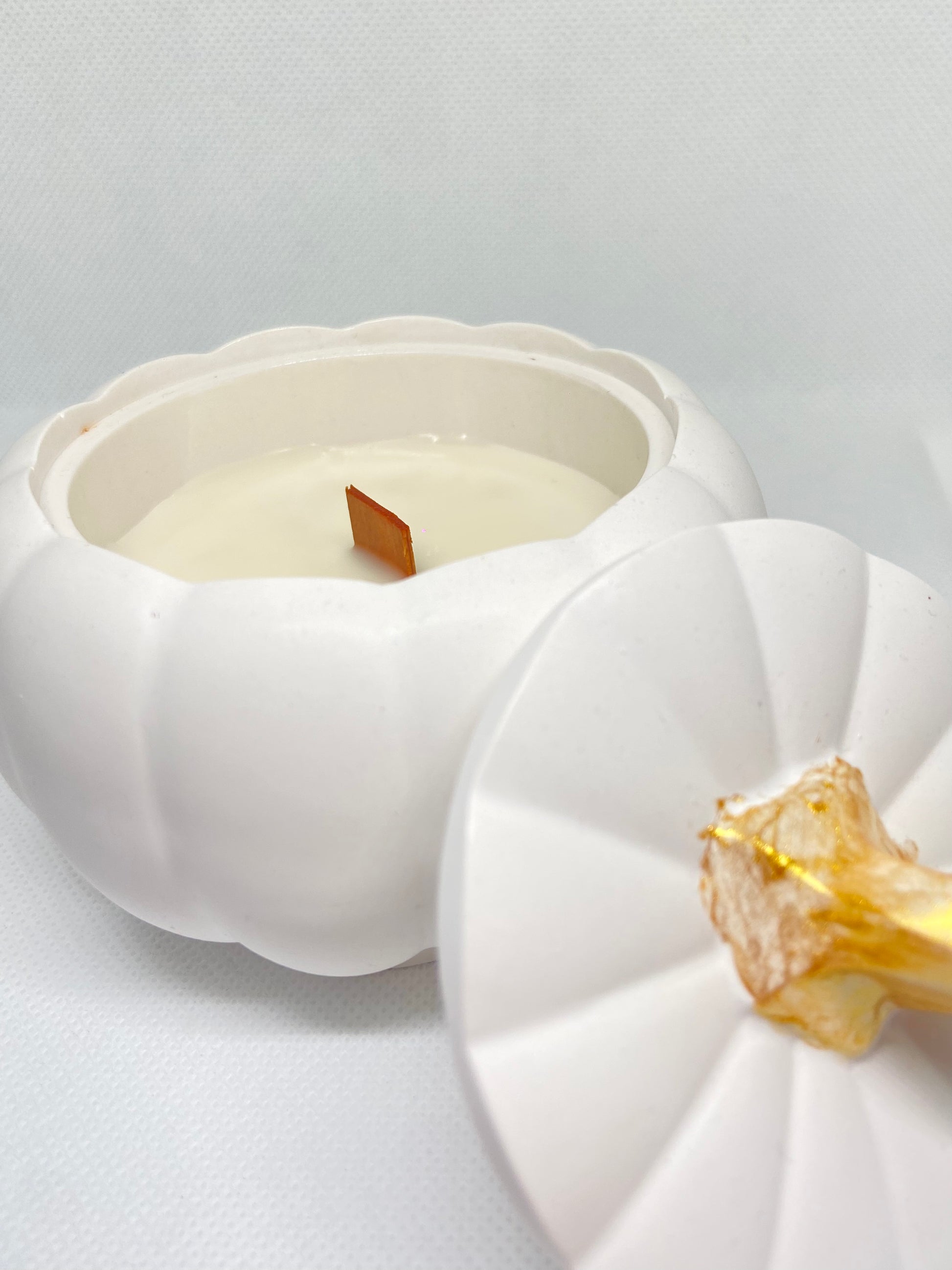 Nuestra vela de soja Encanto de Calabaza, elaborada en un elegante recipiente de yeso artesanal, combina el diseño minimalista con la calidez de las fragancias otoñales.