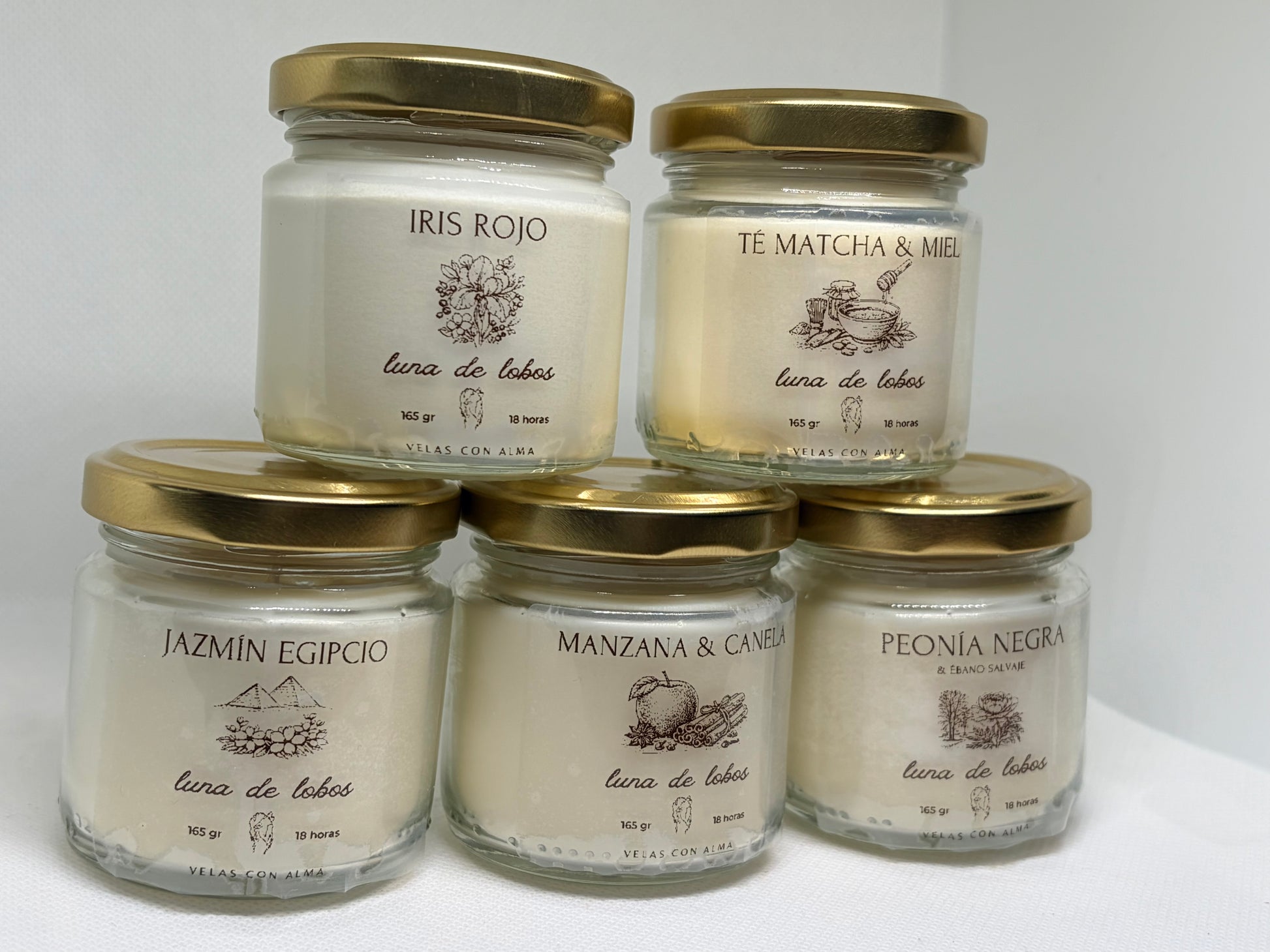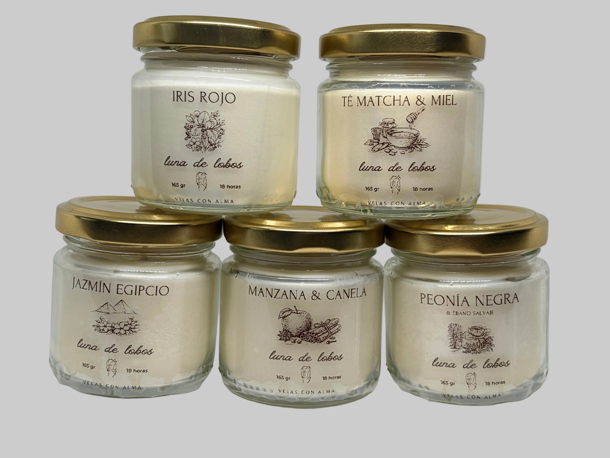 Fragancias: Jazmin Egipcio, Peonia Negra y Ebano, Manzana y Canela, Té Matcha y Miel y Iris Rojo